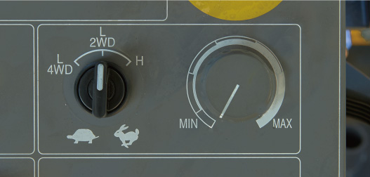 ●低速4WD(1.0~12m/min)适合摊铺速度的模式,4轮同时驱动发挥牵引力。