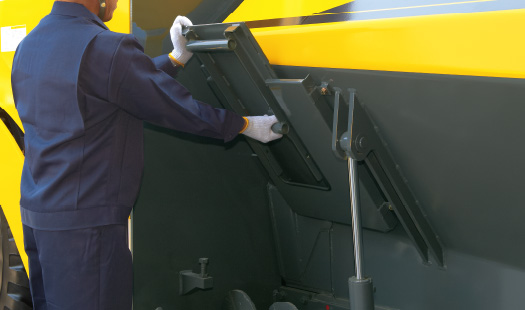 更换轮胎时将熨平板油缸和调平油缸提升到^大高度,即可更换。